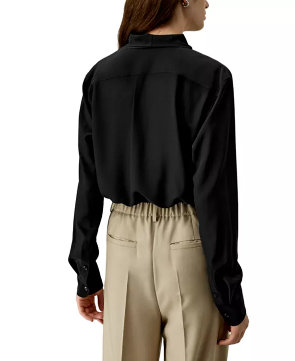 Блузка Silk Bowtie излучает элегантность благодаря ткани 100% шелковый крепдешин. Глубокий V-образный вырез и рукава рубашечного типа создают утонченный, профессиональный образ, а универсальный бант добавляет женственности. Сочетайте ее с брюками для офиса или с длинной юбкой для более изящного и женственного образа.