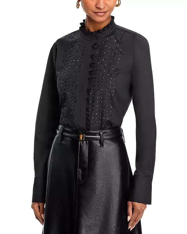 Застежка на пуговицы спереди, оборки на планке