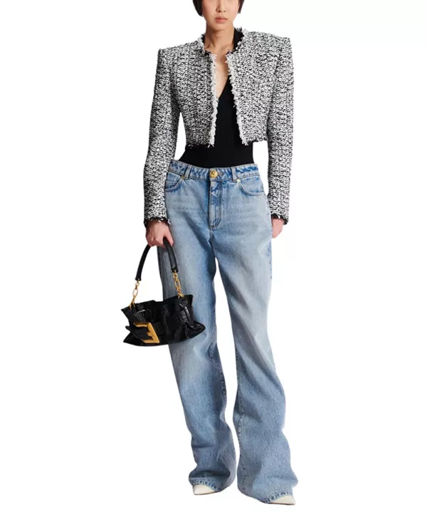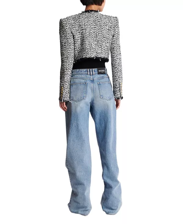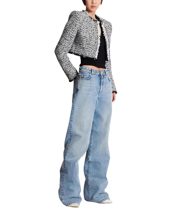 Укороченный твидовый жакет Balmain, черный