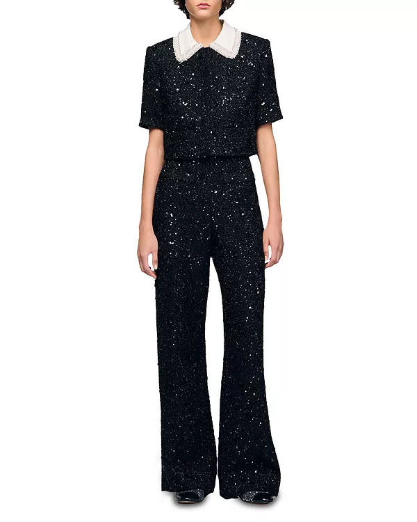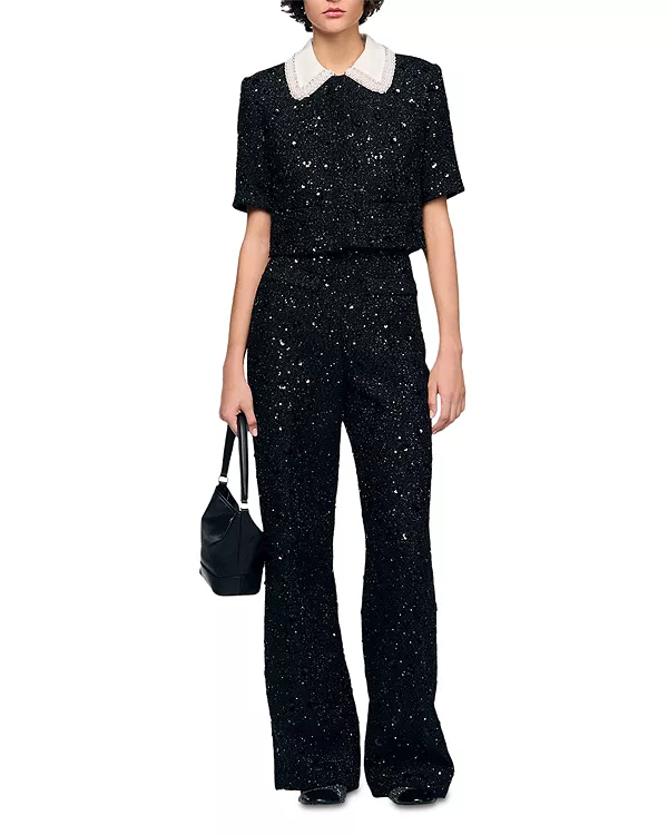 Твидовый жакет Bennelie со стразами Sandro, черный 45 953₽