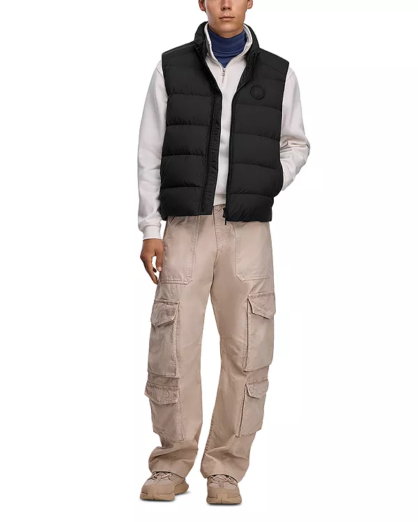 Особенности: Воротник-стойка Двусторонняя застежка-молния Без рукавов Два боковых кармана на молнии Трансформируется в сумку с ремешком для переноски Складывается во внутренний левый карман Сделано в Канаде