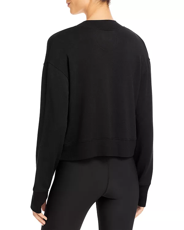 Длинные рукава, приспущенные плечи, отверстия для больших пальцев на манжетах