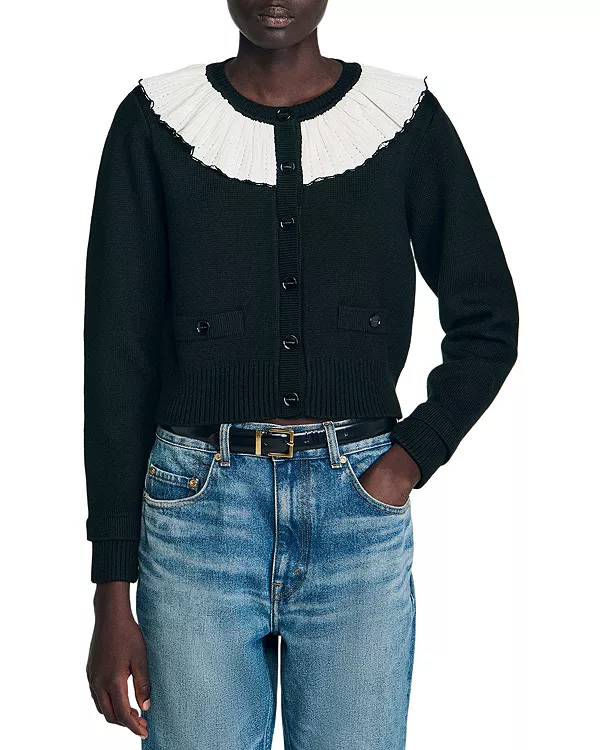 Кардиган с контрастным воротником Sandro, черный 26 353₽