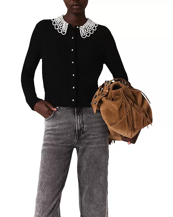 Кардиган с декорированным воротником Maje, черный