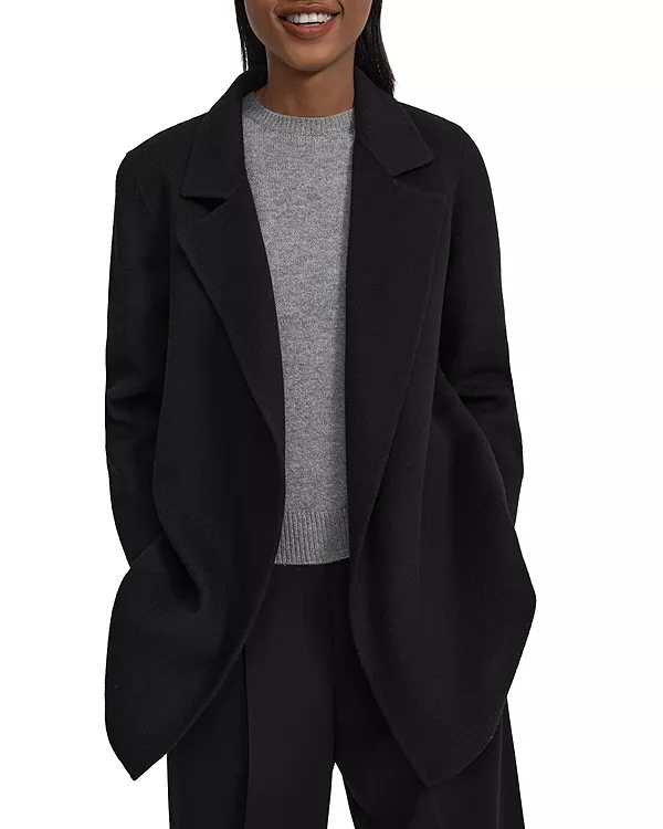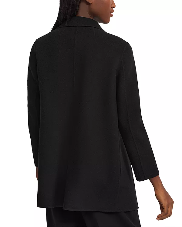 Кашемировое пальто Theory свободного кроя с рукавами длиной до запястья, модель Clairene, отличается роскошным внешним видом и приятными тактильными ощущениями, что делает его актуальным вне зависимости от сезона.