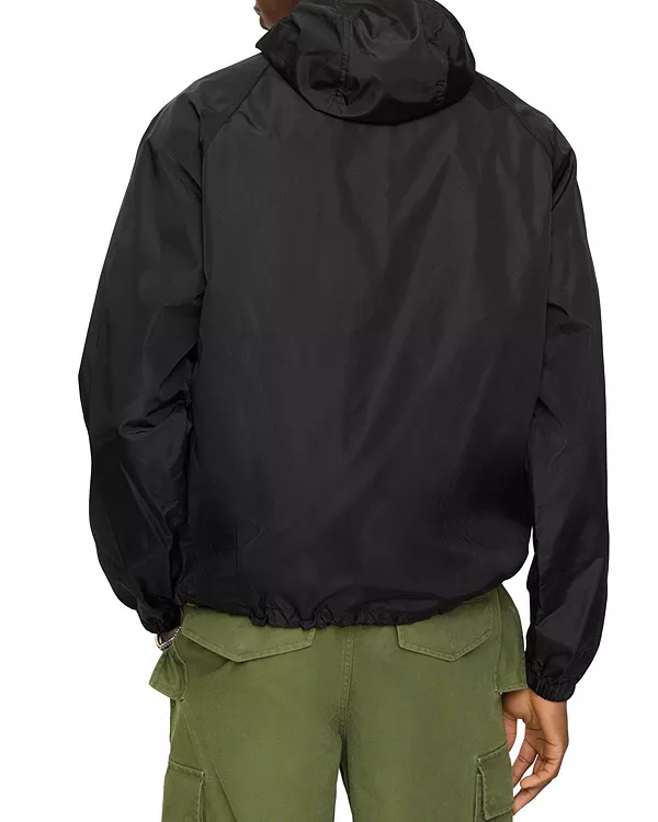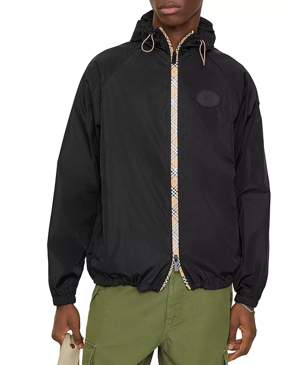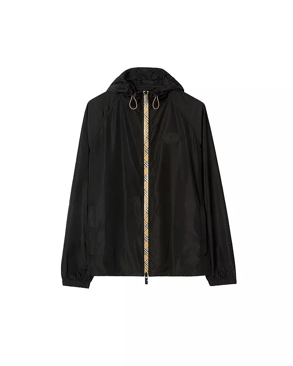 Бренд: Burberry Цвет: черный Куртка с капюшоном из нейлоновой ткани, отделанная клетчатой лентой Burberry и застежками-молниями B-образного кроя. Легкая модель свободного кроя украшена аппликацией с фирменным знаком «Рыцарь» - архивным мотивом, впервые появившимся на сумках Burberry в 1980-х годах.