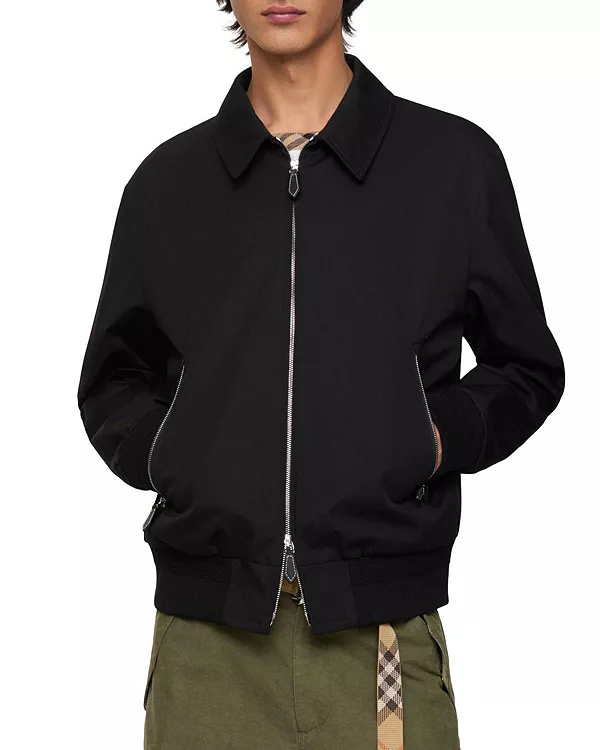 Бренд: Burberry Цвет: черный Куртка-харрингтон, изготовленная в Каслфорде, Йоркшир, из водоотталкивающего габардина. Внутри - хлопковая подкладка Burberry Check фирменного архивного бежевого цвета, используемая для подкладки наших пальто с 1920-х годов. Слегка утепленная модель имеет свободный крой и отделана трикотажной резинкой из шерстяной смеси.