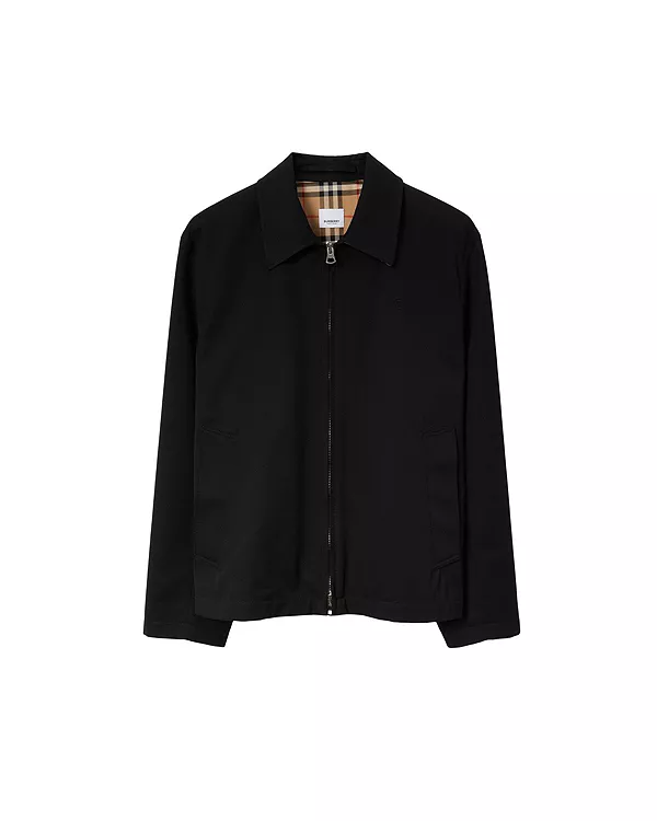 Куртка-харрингтон, изготовленная в Англии из водоотталкивающего хлопкового габардина. Модель имеет свободный крой и подкладку в клетку Burberry.