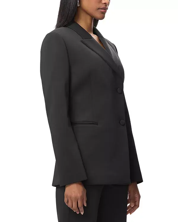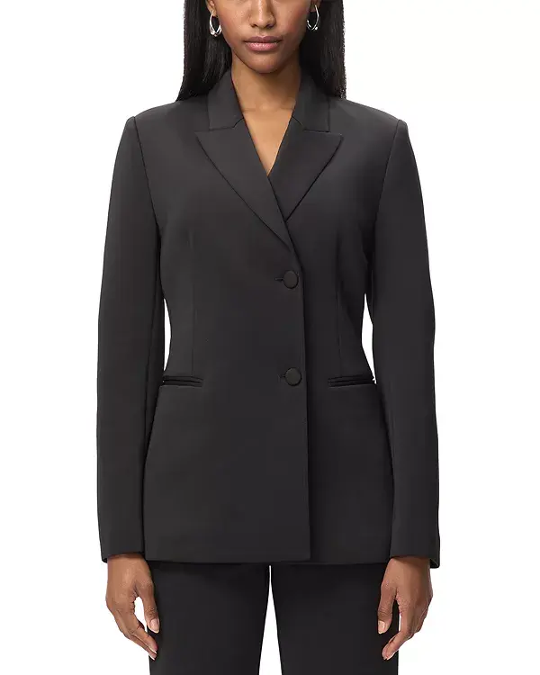 Пиджак Avra от Hervé Léger, представленный в третьем образе лукбука коллекции Resort '26, - это структурированный, приталенный блейзер, сшитый из эластичной ткани «скуба» на подкладке. Пиджак имеет приталенный силуэт, заостренные лацканы, передние прорезные карманы и пуговицы, обтянутые той же тканью.