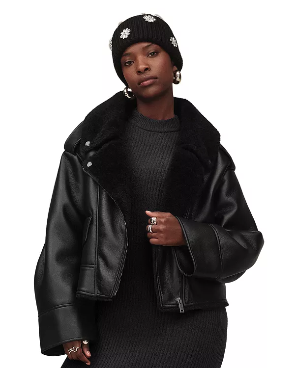 Изготовленная из роскошного сочетания искусственной кожи и мягкой искусственной овчины, эта мотокуртка имеет классическую асимметричную застежку-молнию Moto и объемный воротник, которые вы знаете и любите.