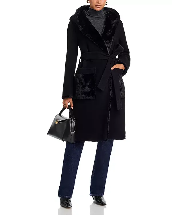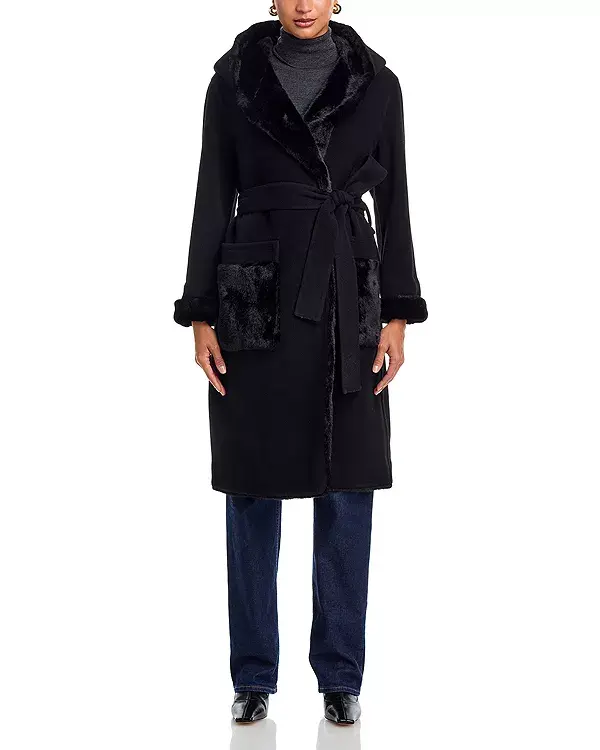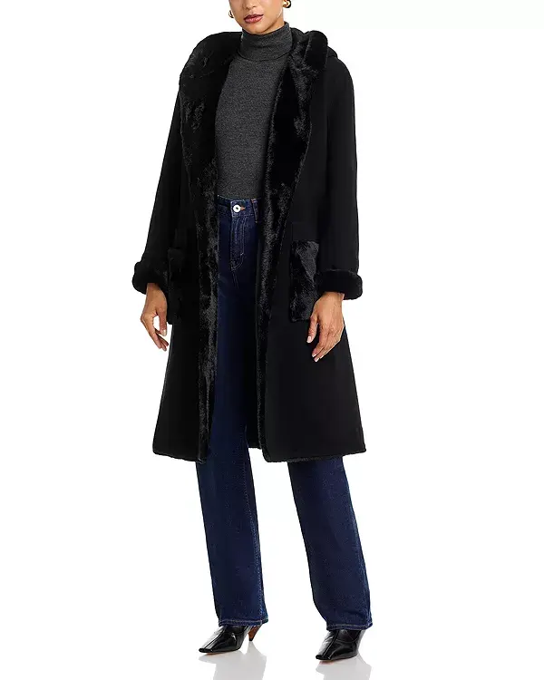 Воротник-шаль и капюшон с отделкой из искусственного меха