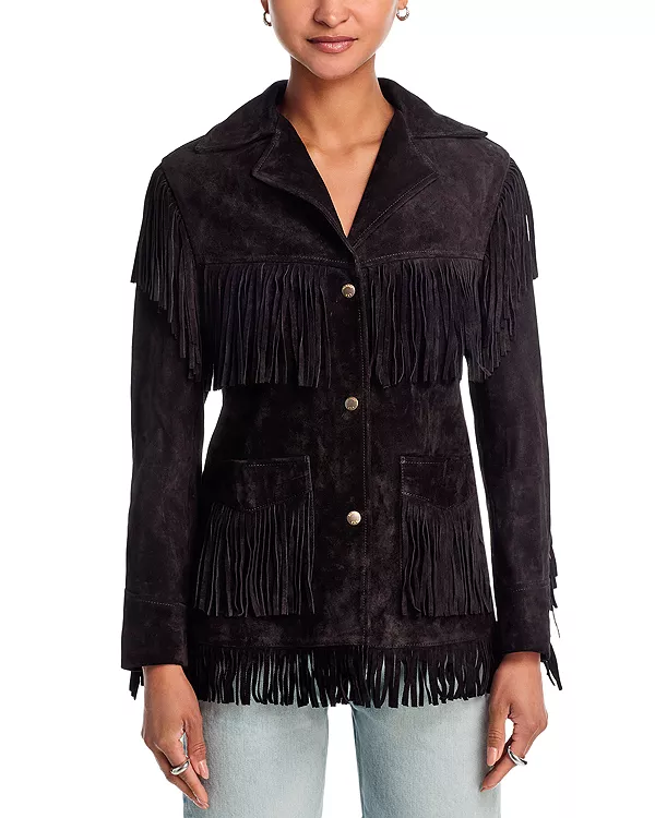 Замшевая куртка с бахромой Re/Done, черный 125 522₽