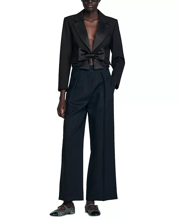 Короткая атласная куртка с бантом Sandro, черный 39 800₽