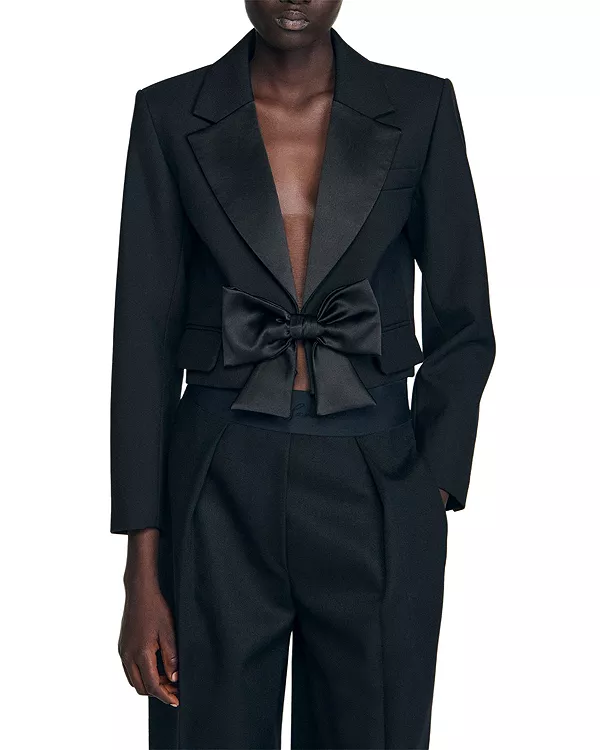 Короткая атласная куртка с бантом Sandro, черный