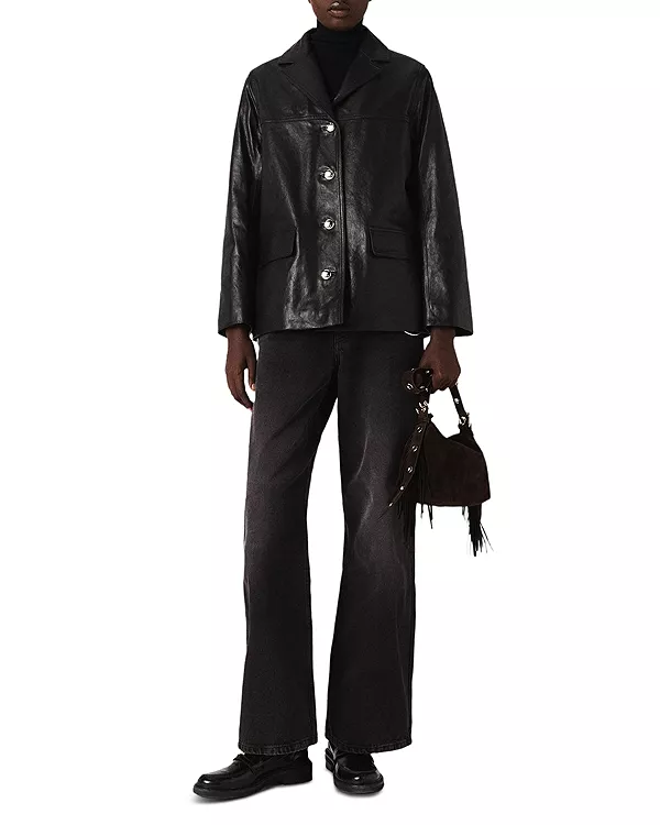 Параметры модели: рост 178 см, обхват груди 84 см, обхват талии 66 см, обхват бедер 89 см, на ней размер Maje 36