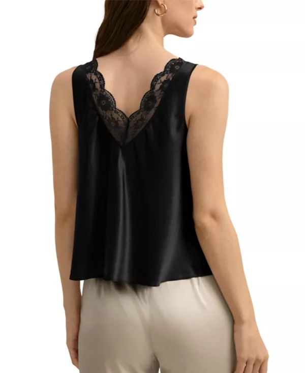 Бренд: Lilysilk Цвет: черный Представляем вашему вниманию новую незаменимую шелковую вещь - кружевную майку Armeria. Шелк шармез плотностью 22 момм невероятно гладкий и роскошный, а А-образный силуэт делает фигуру женственной и выгодно подчеркивает достоинства, дополненный нежным кружевом вдоль V-образного выреза.