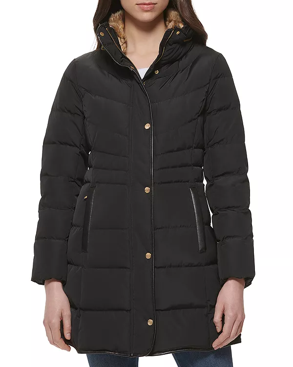 Воротник-стойка с отделкой из искусственного меха; складывающийся капюшон