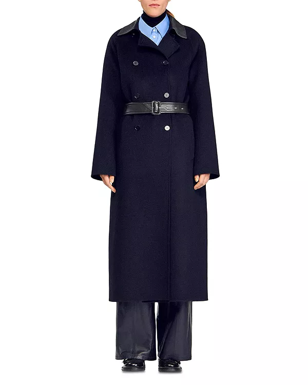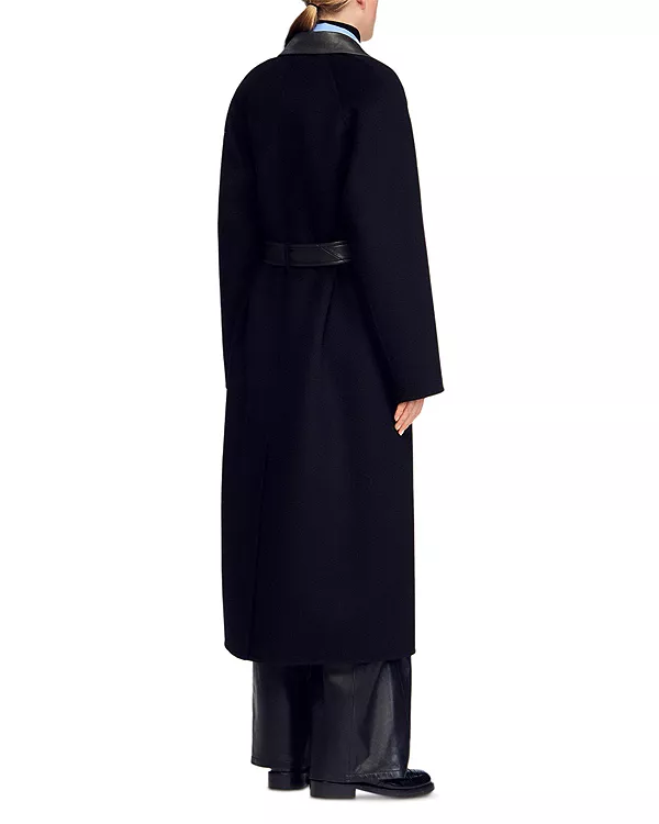Длинное пальто из шерсти и кожи Sandro, черный 64 507₽