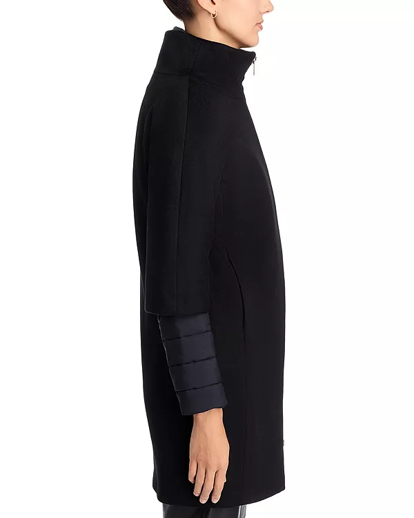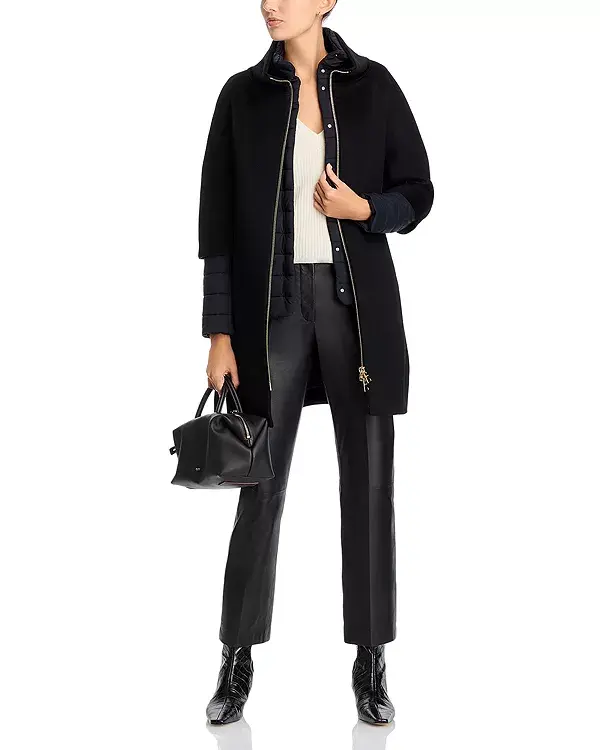 Внешнее пальто: 100% шерсть; внутренняя куртка: 100% нейлон; покрытие: 100% полиуретан; отделка: 55% хлопок/45% полиэстер; подкладка: 100% нейлон; наполнитель: 100% полиэстер