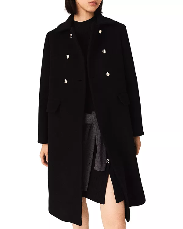 Длинное пальто из шерстяной смеси Maje, черный 85 577₽