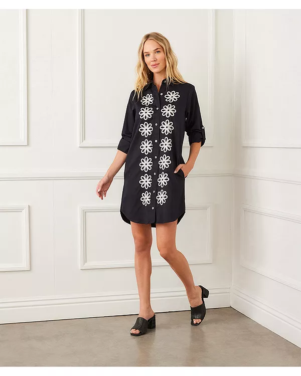 Платье-Рубашка с вышитым язычком Karen Kane, черный