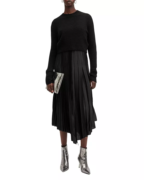 Платье-Макси Jax 2-в-1 с плиссировкой Allsaints, черный