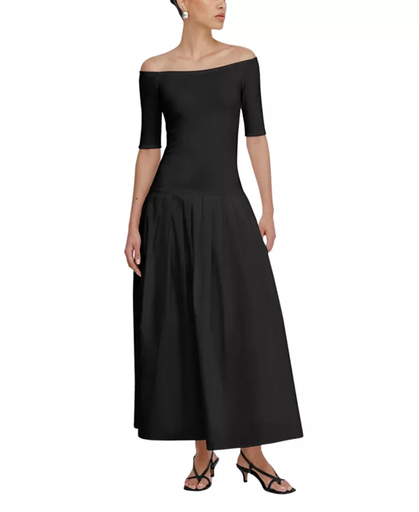 Размеры изделия: Соответствует размеру Приталенный силуэт в области груди, талии и бедер. Плиссированная юбка. Слегка эластичный крой, неэластичная юбка Длина для размера XS составляет приблизительно 51,5" (131 см).
