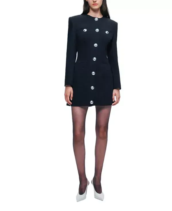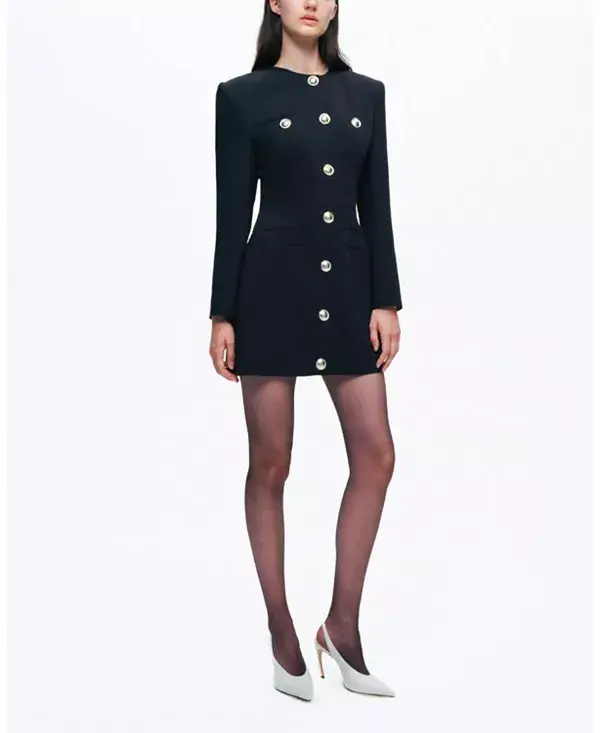 Особенности: Круглый вырез Это смелое, но вневременное мини-платье с подплечниками сшито из тканого материала, имеет стандартный крой и полную подкладку для создания структурированного силуэта. С длинными рукавами, классическим круглым вырезом и застежкой на кнопки спереди, оно сочетает в себе комфорт и современный стиль. Застежка на пуговицы спереди Без подкладки Импортный товар