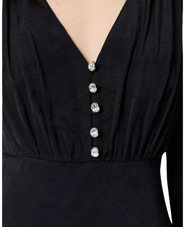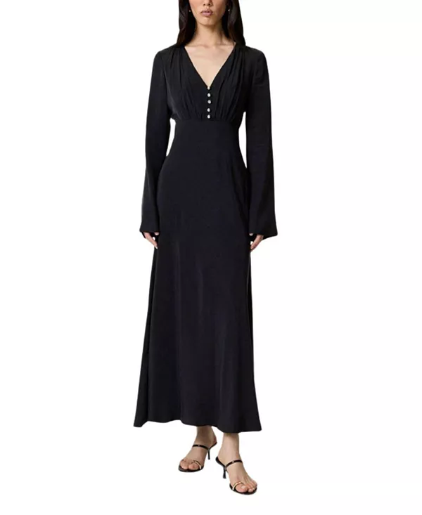 Макси-Платье с отделкой из хрустальных пуговиц Nocturne, черный