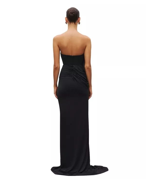 Бренд: Heiress Beverly Hills Цвет: черный Это платье, сшитое из фирменного эластичного трикотажа Heiress, струится по телу, создавая ощущение легкости и изящества. Структурированный лиф имеет внутреннюю косточку вдоль выреза горловины для придания формы и поддержки, а мягкие сборки визуально удлиняют талию и бедра. Высокий разрез до бедра завершает образ - чувственный, скульптурный и бескомпромиссно изысканный.