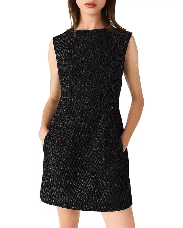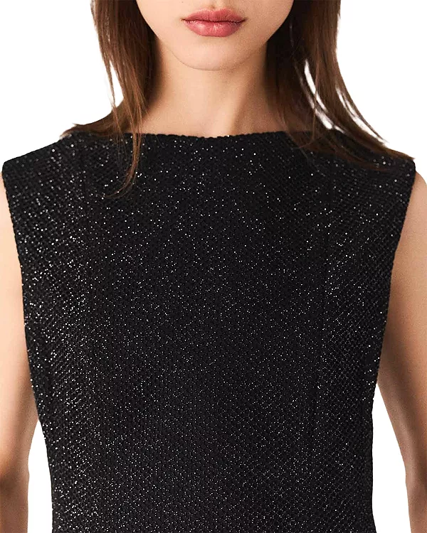 Бренд: Maje Цвет: черный Maje переосмысливает силуэт, предлагая новые объемы. Это короткое платье из мерцающей сетчатой ткани облегает изгибы фигуры, сочетая в себе плавность и структуру. Круглый вырез и очень короткие рукава контрастируют со смелой открытой спиной, а слегка эластичная ткань обеспечивает комфорт и поддержку. Современная интерпретация вечернего наряда.