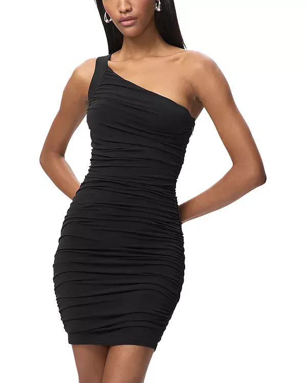 Как видно на седьмом образе из лукбука Hervé Léger Resort '26, платье Lumi представляет собой облегающее мини-платье, скроенное из фирменного трикотажа. Силуэт на одно плечо дополнен боковыми сборками и боковой застежкой-молнией.