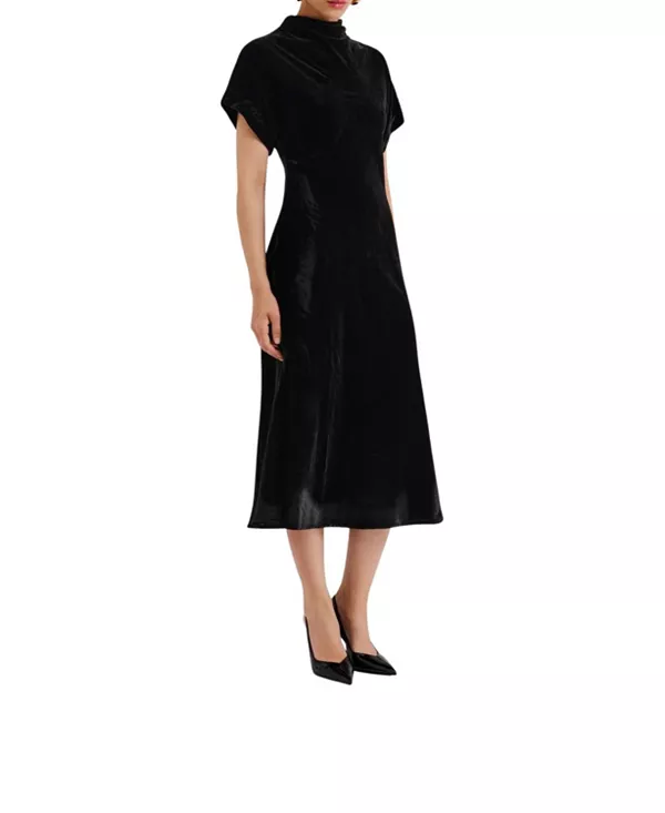 Бархатное платье миди с коротким рукавом Alivia Malina, черный