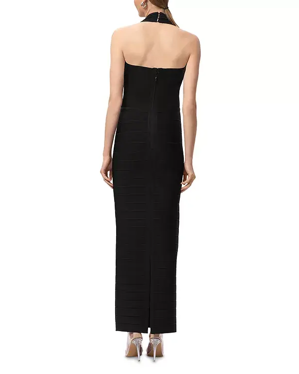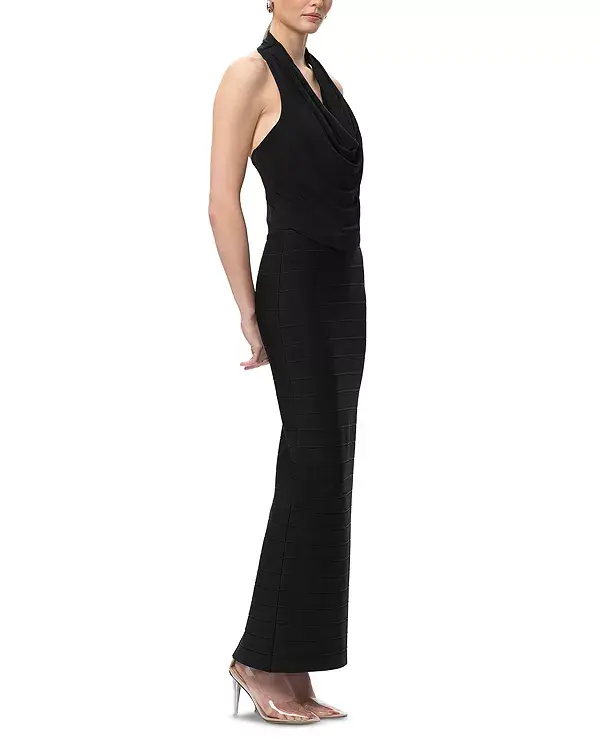 Платье Lia, сшитое из роскошного вискозного трикотажа с фирменной юбкой-бандаж, имеет низкий воротник-хомут и завязки на шее. Завершает образ разрез сзади и застежка-молния по центру спины.