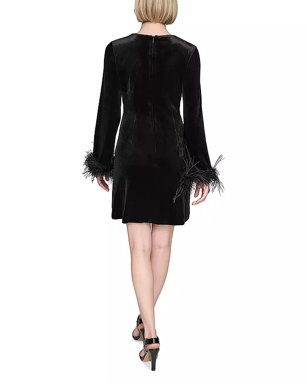 Платье из эластичного бархата с перьевой отделкой Karl Lagerfeld Paris, черный 7 374₽