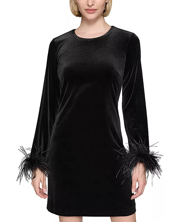 Платье из эластичного бархата с перьевой отделкой Karl Lagerfeld Paris, черный