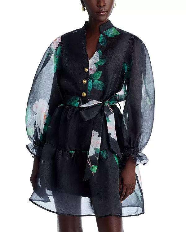 Цветочный принт по всей поверхности, многоярусная юбка