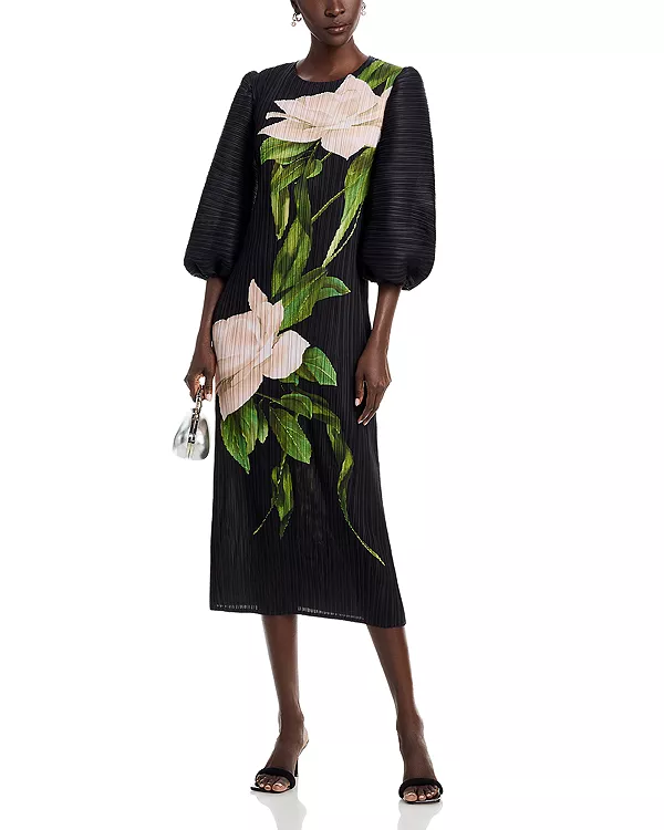 Платье из жатой ткани с цветочным принтом Nancy Yang, мультиколор