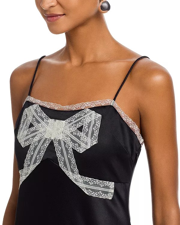 Isolie платье макси из крепа с кружевом и бантом Loveshackfancy, черный 50 865₽