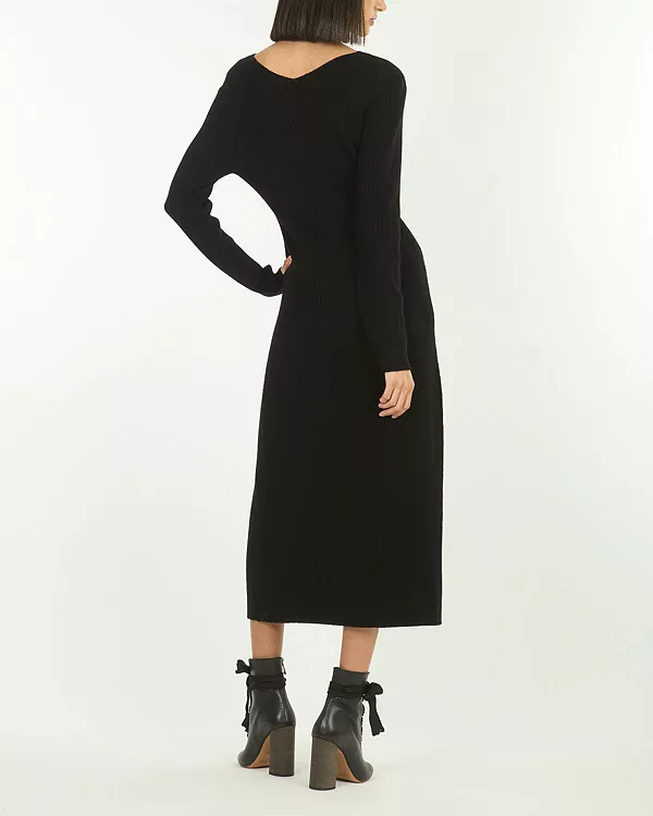 Сшитое из роскошной смеси кашемира и шерсти, платье Taylor сочетает в себе тепло и элегантную изысканность. С V-образным вырезом в стиле запаха, длинными рукавами и разрезом спереди, это минималистичное платье миди подчеркивает силуэт с непринужденной элегантностью.