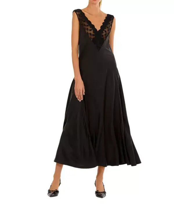 Платье Paulette, изготовленное из 100% органического шелка, обработанного песком, имеет мягкую матовую поверхность и струящуюся драпировку. С V-образным вырезом с кружевной отделкой и силуэтом, скроенным по косой, оно легко струится, сочетая вневременную изысканность с современной грацией.