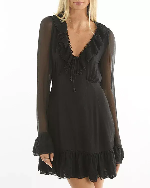 Романтическое платье Poet, изготовленное из 100% органического шелкового жатого шифона, отличается легкой, струящейся драпировкой. Дизайн с рюшами на вырезе, расклешенными манжетами и многослойным подолом создает силуэт в винтажном стиле с изящным движением и очарованием.