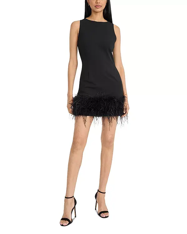 Мини-Платье с перьевой отделкой Donna Morgan, черный