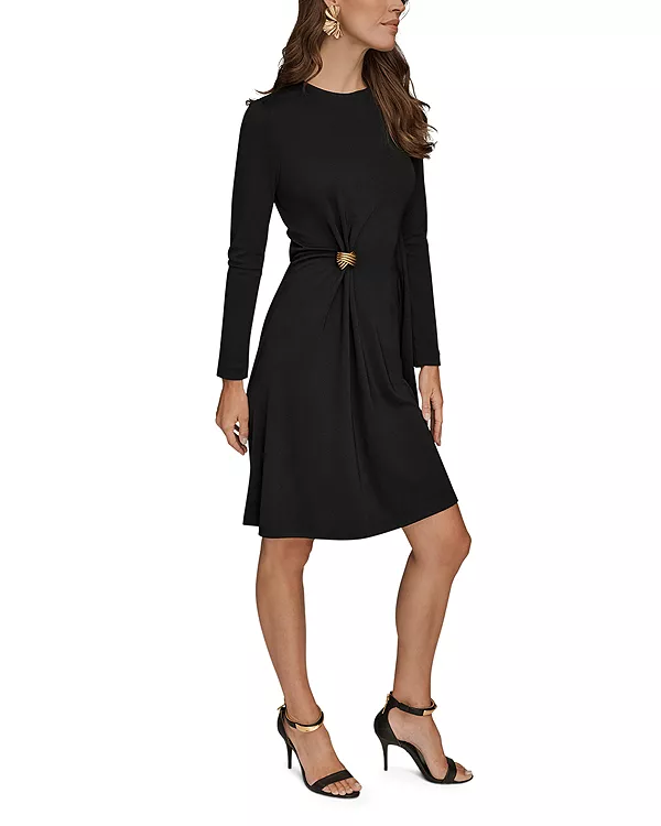 Платье с драпировкой и металлической отделкой Donna Karan, черный