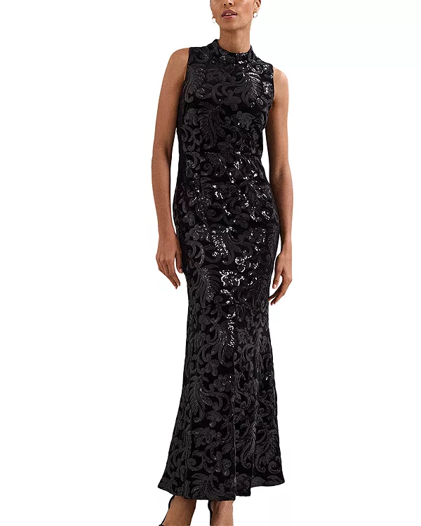 Платье-Макси Trudy из бархата с пайетками Phase Eight, черный 65 575₽
