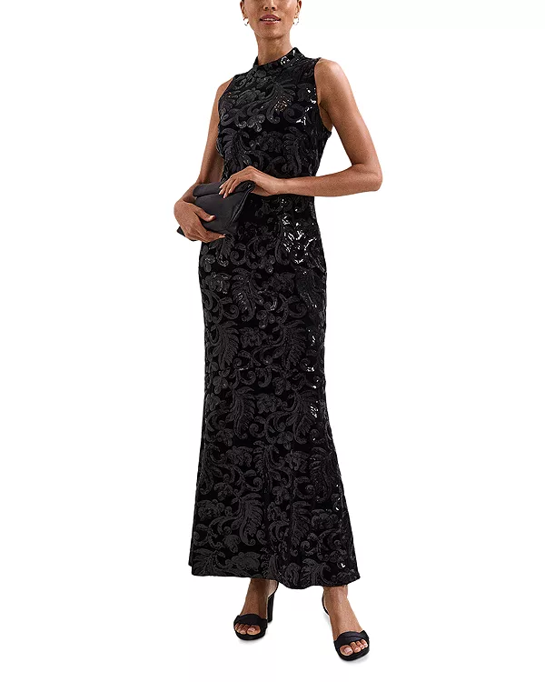Платье-Макси Trudy из бархата с пайетками Phase Eight, черный