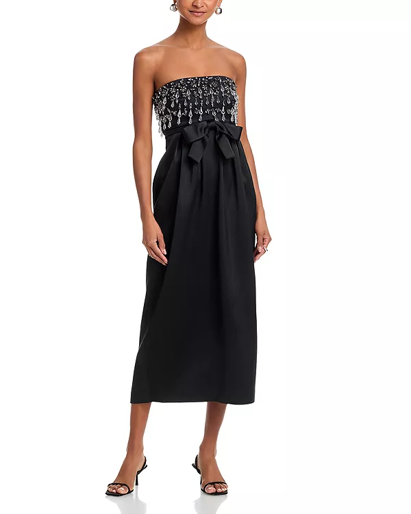 Многослойное миди-платье с драгоценными камнями Cinq À Sept, черный 79 105₽