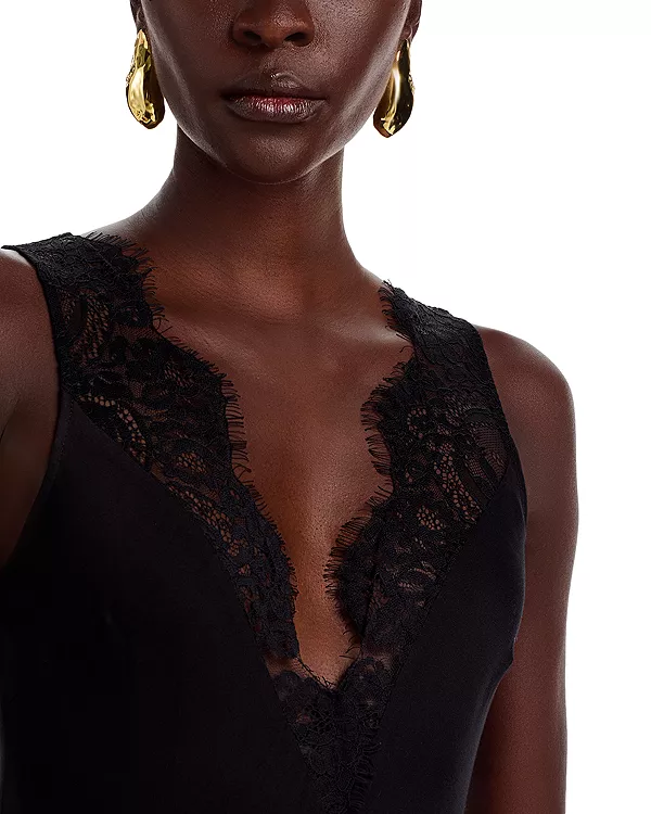 Глубокий V-образный вырез с полупрозрачной кружевной отделкой