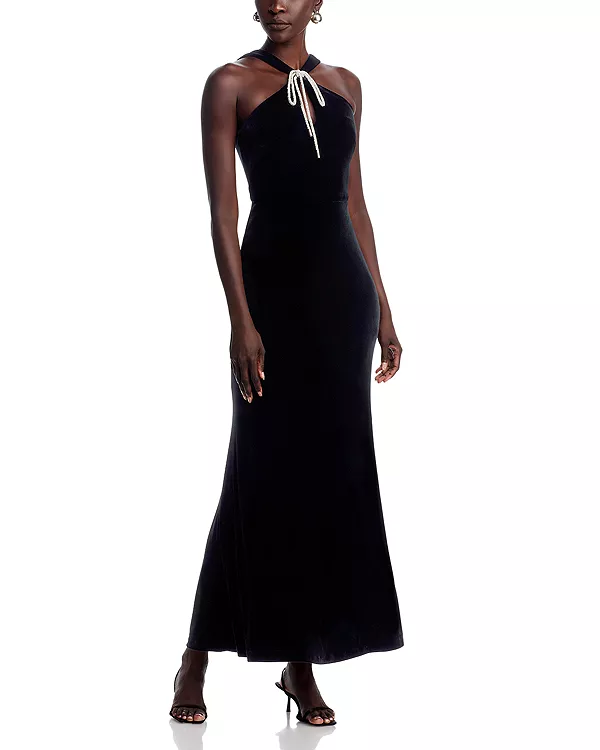 Платье из эластичного бархата с бантом спереди Eliza J, черный