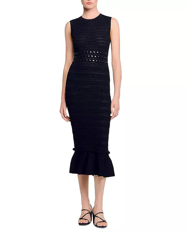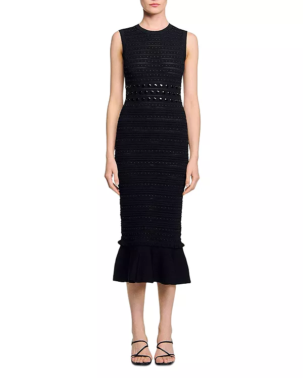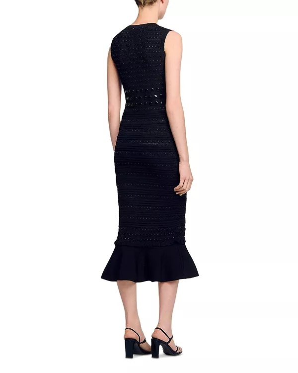 Вязаное платье миди с заклепками Sandro, черный 34 233₽